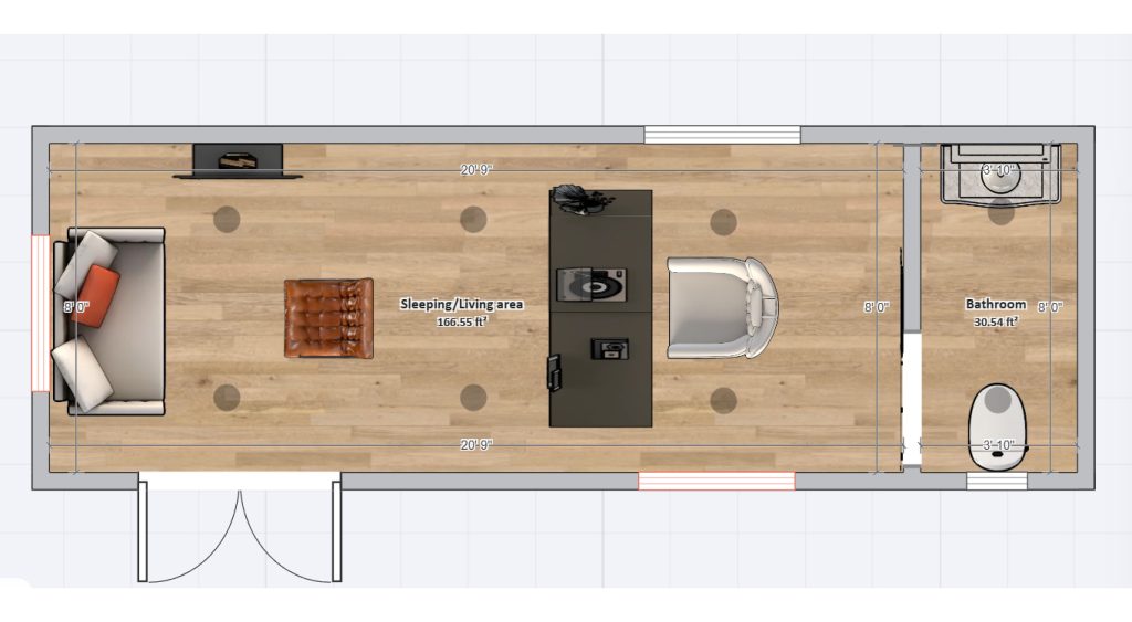Shipping Container Tiny Home 1-Bedroom Suite Sample 1